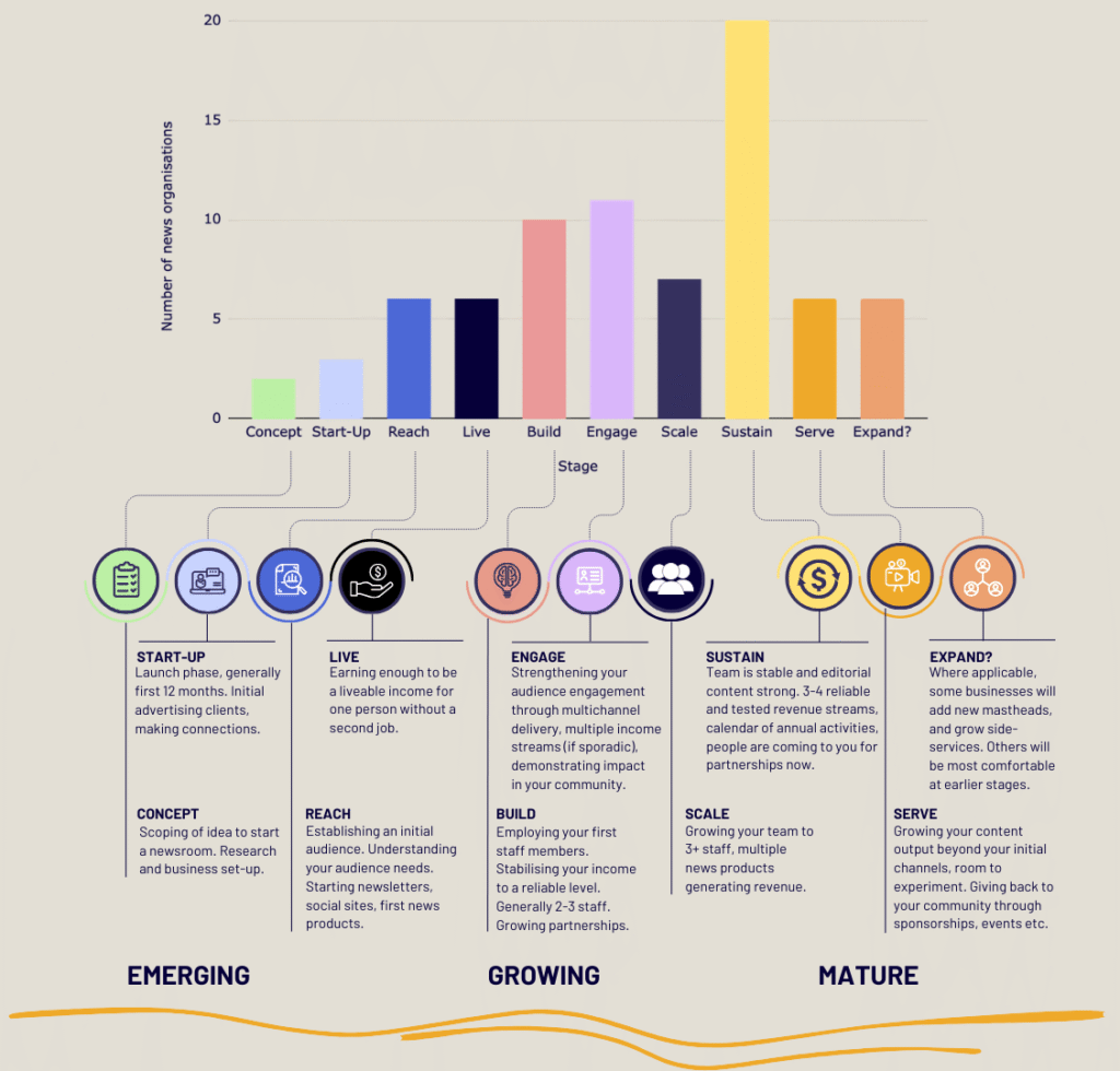 Members range from emerging newsrooms in the beginning stages of launching their news service, to mature media organisations looking to expand or improve their longterm sustainability.